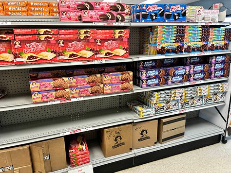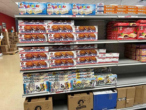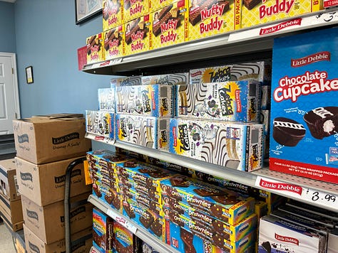 After Mom’s PT appointment on Monday, we hit the local Little Debbie outlet. I only planned to grab a few belated Easter treats for our sons back in South Carolina. Long story short, they’ll have enough to fill dozens of Easter baskets.