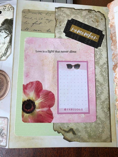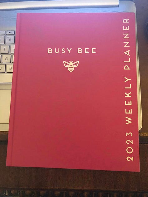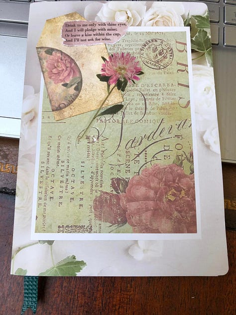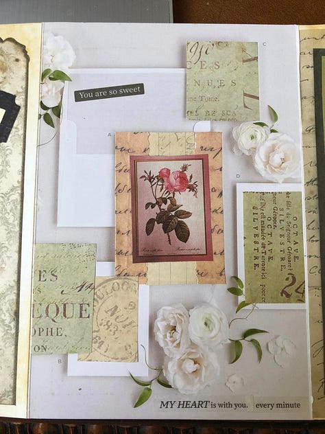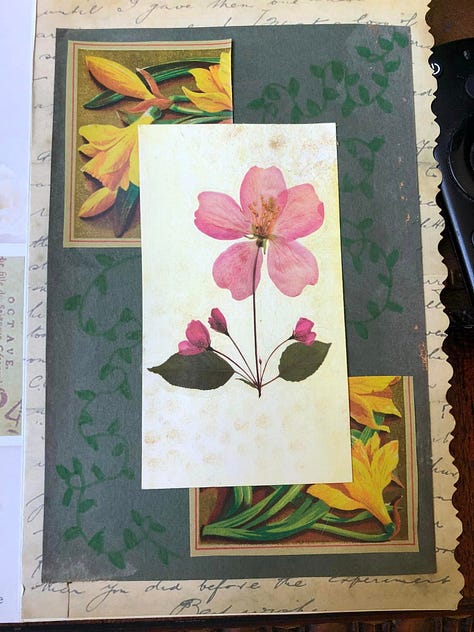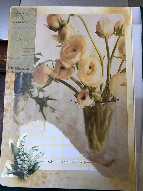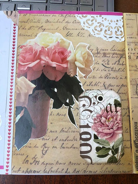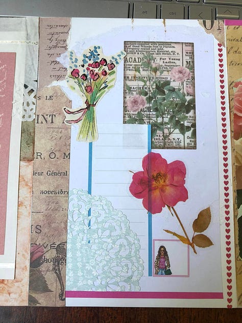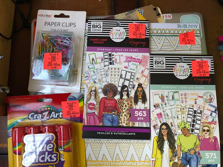 I also found some children’s books and a blank 2023, bee-themed planner at a local thrift store. At Dollar Tree and Ollie’s (an awesome close-out store with deeply discounted items), I found supplies that fit my budget. I placed an order from an online company called Journalsay during their spring mega-sale, and I ordered a few extra things (like a pack of reproductions of vintage papers) from Amazon.